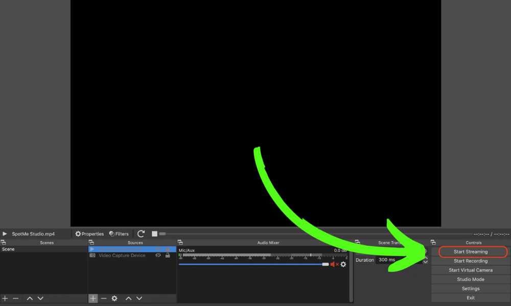 Volviendo a los aspectos básicos, → ¿cómo puedes empezar un directo? Muy fácil, en el apartado Controles de OBS, hay un botón para Iniciar transmisión, siempre que todo esté bien configurado.