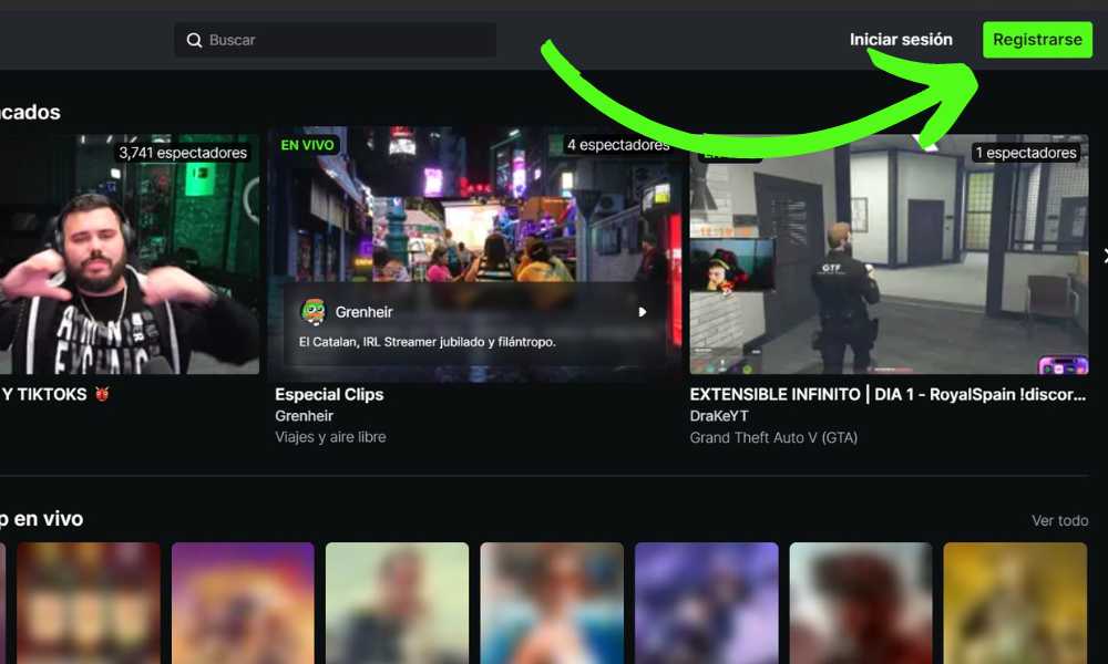 El primer paso es abrir una cuenta en Kick. Si ya tenías una cuenta en Twitch, verás que el diseño de la página e incluso la navegación es muy parecida.