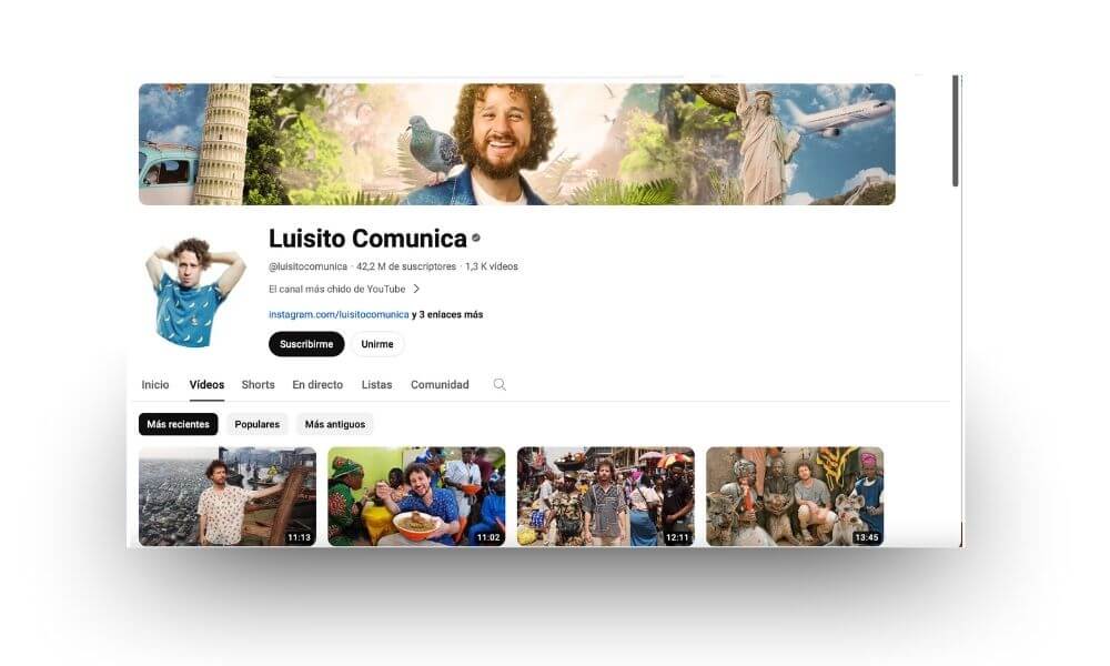 Luisito Comunica es otro de los youtuber con más seguidores en México. Cuenta con 42,2 millones de suscriptores a día de hoy. Sube contenido variado, conocido por sus vlogs de viajes y experiencias en diferentes países, lo que lo ha convertido en uno de los youtubers más importantes de la región.Sus vídeos se caracterizan por ser entretenidos e informativos, enseña lugares exóticos, diferentes culturas, gastronomía, entrevistas y experiencias únicas. También realiza bromas, retos y colaboraciones con otros youtubers.