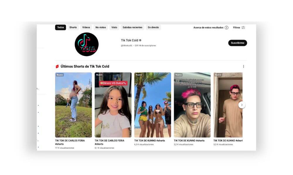 Este canal es uno de los más sorprendentes del listado. Se dedica a reunir los videos más virales de TikTok y los comparte en short. Ofrece una dosis diaria de entretenimiento a casi 6 millones de suscriptores. Su contenido va desde retos divertidos hasta bailes pegadizos, Tik Tok Cold se ha convertido en una fuente de información para descubrir las últimas tendencias de la plataforma.